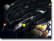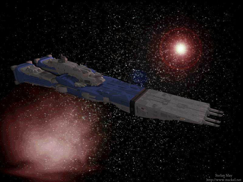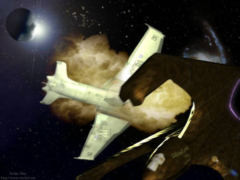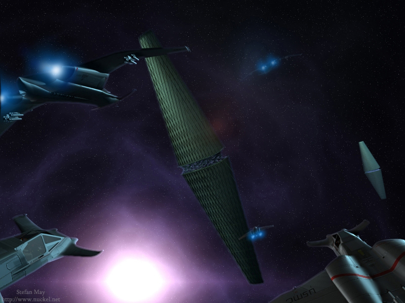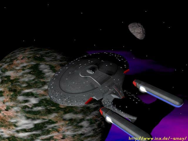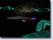 Schiff der Nebula-Klasse vor einer grünen Explosion 1999  |